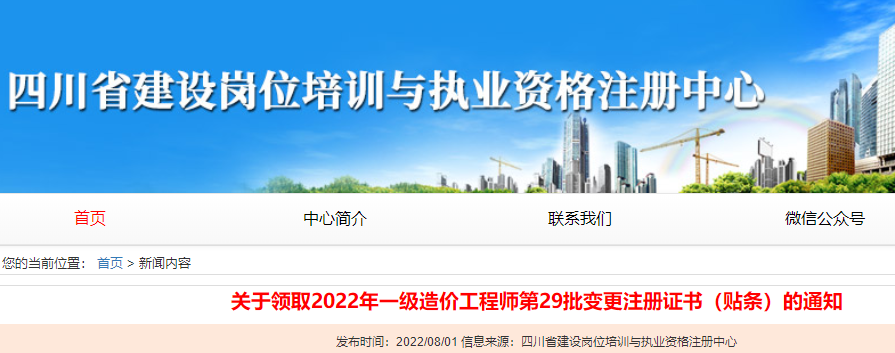 四川領(lǐng)取2022年一級造價工程師第29批變更注冊證書(貼條)的通知