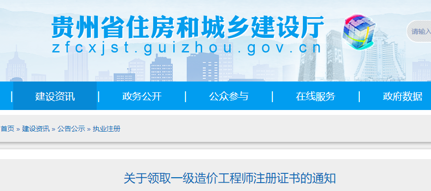 貴州關(guān)于領(lǐng)取2022年一級造價工程師注冊證書的通知