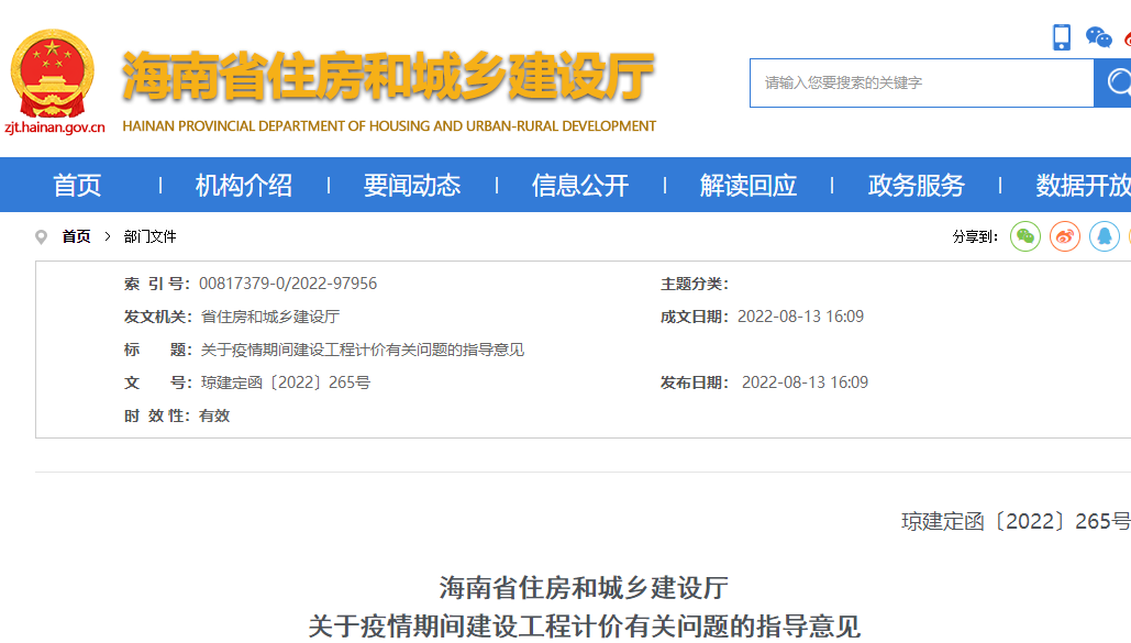 海南住建廳關(guān)于疫情期間建設(shè)工程計(jì)價(jià)有關(guān)問(wèn)題的指導(dǎo)意見(jiàn)