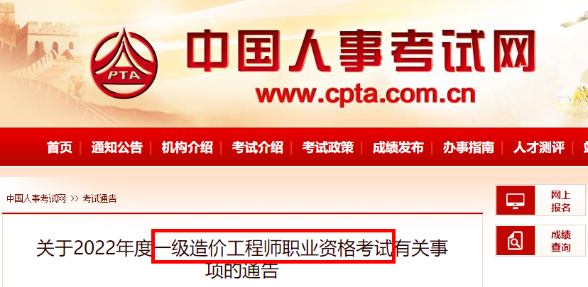 關(guān)于2022年度一級造價工程師職業(yè)資格考試有關(guān)事項的通告