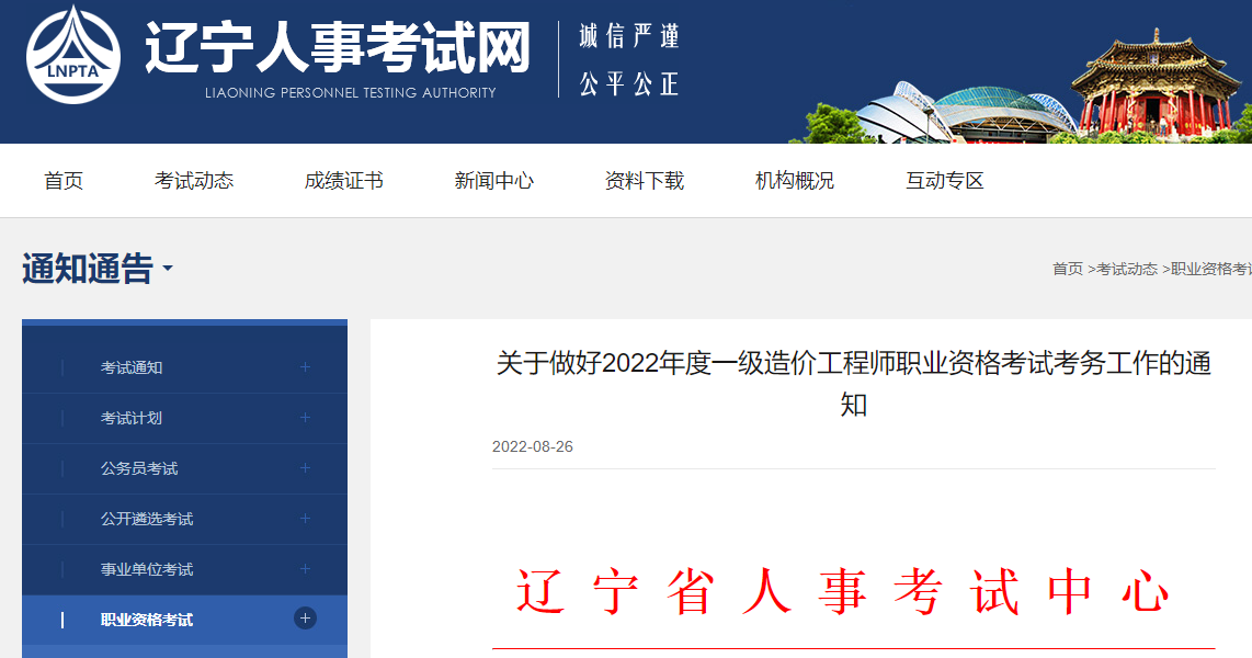 遼寧2022年一級造價工程師考試考務(wù)工作 8月31日-9月7日