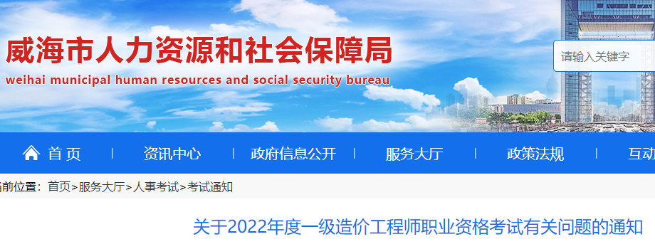 威海市關(guān)于2022年度一級造價工程師職業(yè)資格考試有關(guān)問題的通知