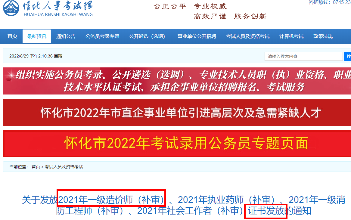 懷化關(guān)于發(fā)放2021年一級造價師(補審)證書發(fā)放的通知