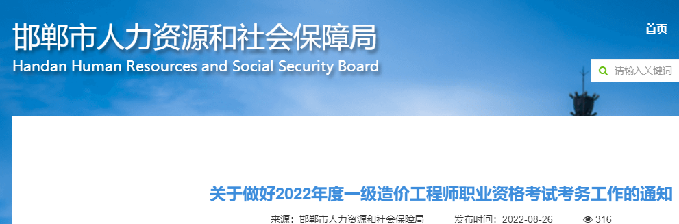 邯鄲2022年一級造價(jià)工程師職業(yè)資格考試考務(wù)工作的通知
