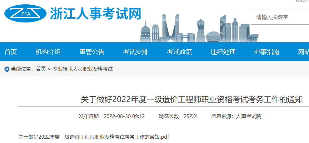 浙江2022年一級造價工程師考試考務(wù)工作通知 9月5日至13日