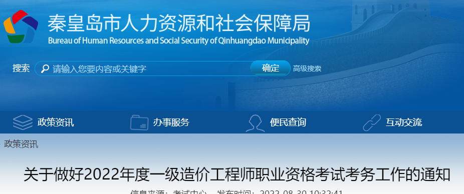 秦皇島2022年一級(jí)造價(jià)工程師職業(yè)資格考試考務(wù)工作的通知