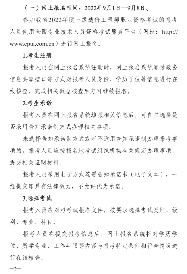 吉林2022一級造價師報考重要信息提示