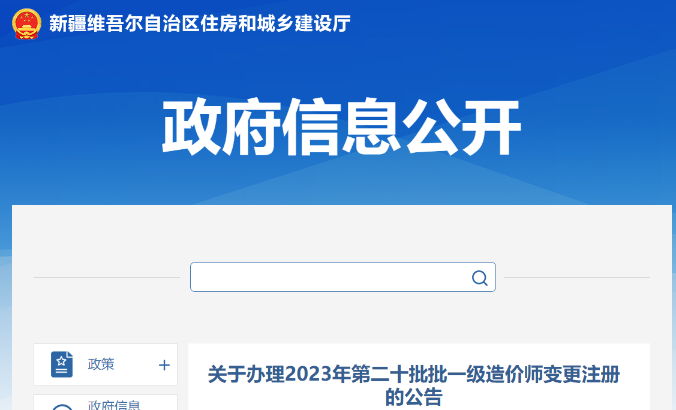 新疆關(guān)于辦理2023年第20批一級造價師變更注冊的公告