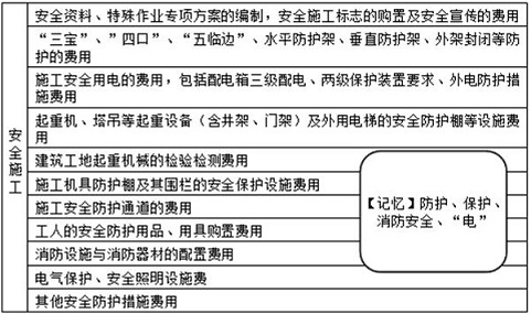 根據(jù)《房屋建筑與裝飾工程計(jì)量規(guī)范》GB50854-2013的規(guī)定,下列各項(xiàng)費(fèi)用屬于安全施工費(fèi)用的有( ?。?。