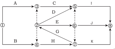 某分部工程雙代號網(wǎng)絡(luò)圖計劃如下圖所示,圖中的錯誤有( )。