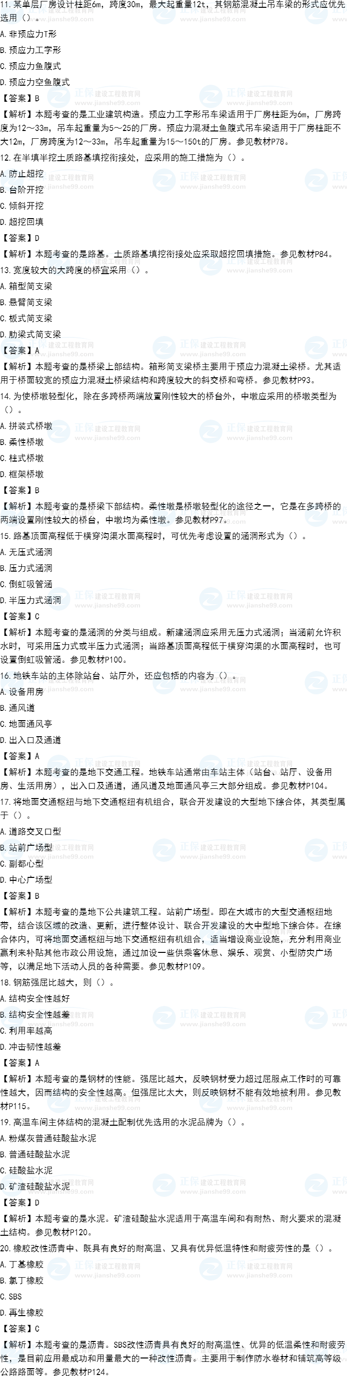 2021年一級(jí)造價(jià)師《土建計(jì)量》試題答案及解析11-20