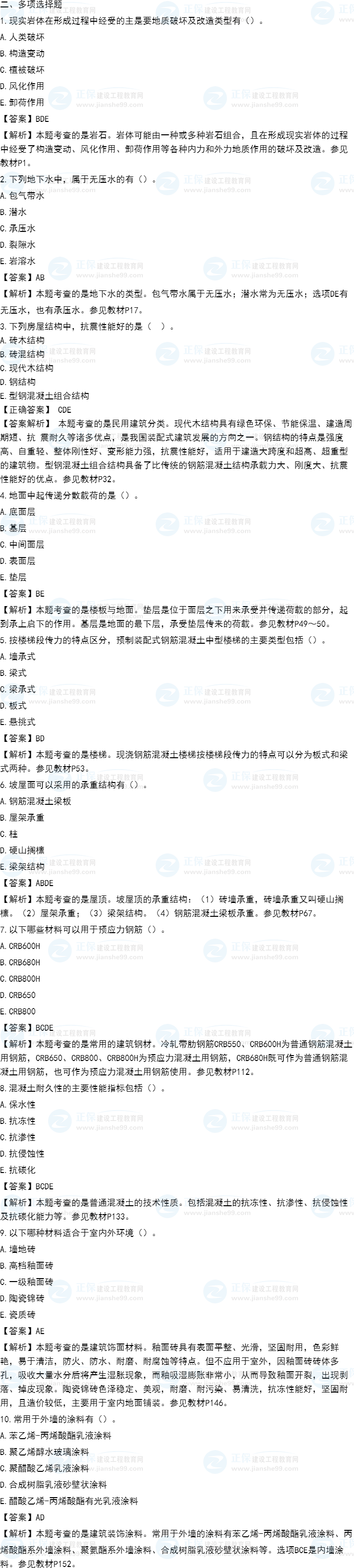 2021年一級(jí)造價(jià)師《土建計(jì)量》試題答案及解析61-70