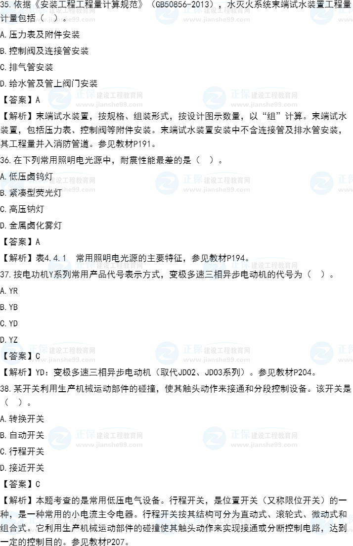 2021年一級造價(jià)師《安裝計(jì)量》試題答案及解析31-40