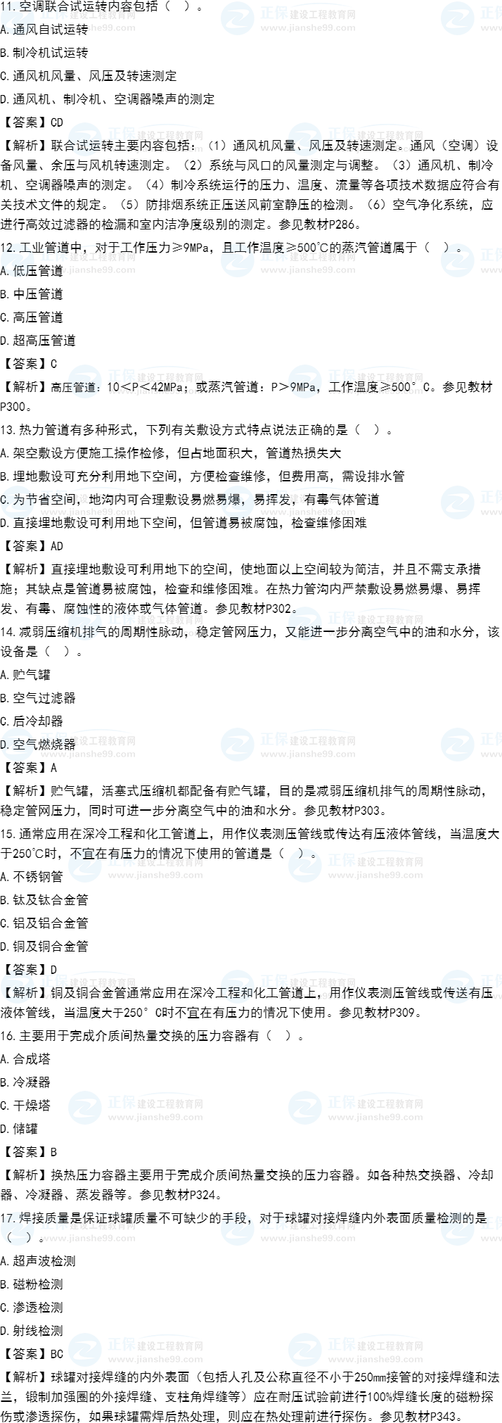 2021年一級造價師《安裝計量》試題答案及解析71-80