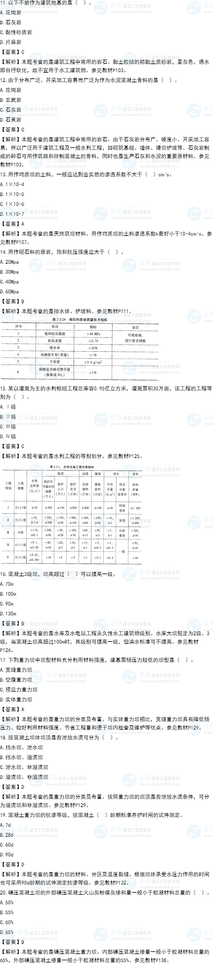 2021年一級(jí)造價(jià)師《水利計(jì)量》試題答案及解析11-20
