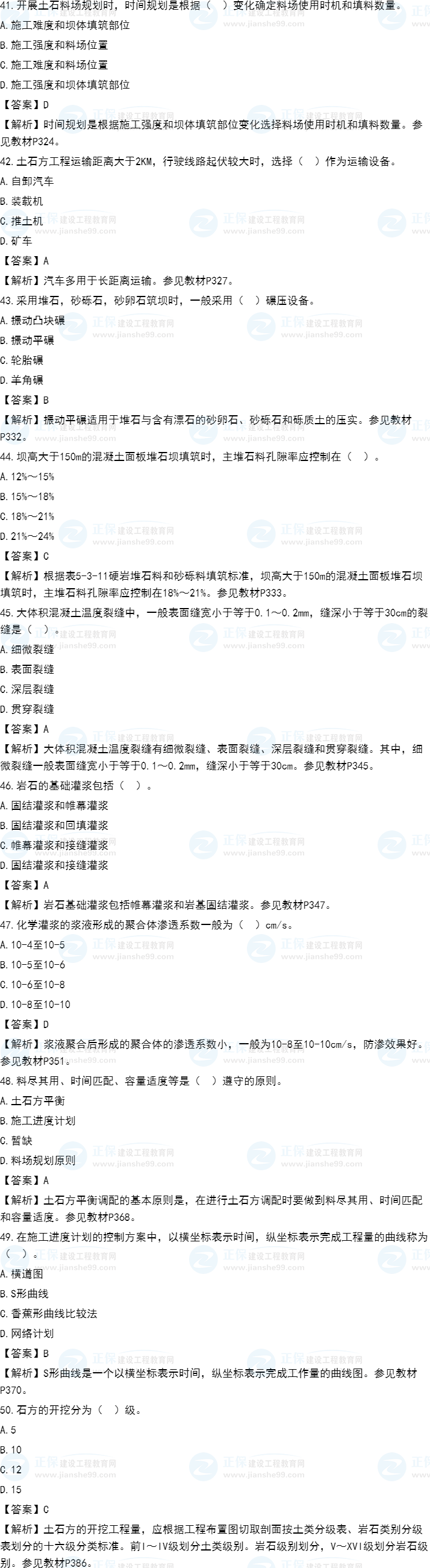 2021年一級(jí)造價(jià)師《水利計(jì)量》試題答案及解析41-50