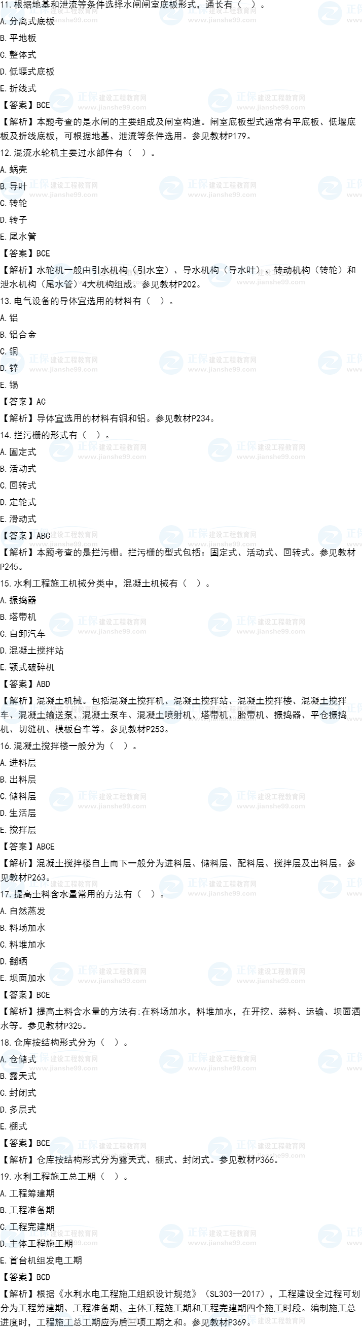 2021年一級造價(jià)師《水利計(jì)量》試題答案及解析71-80