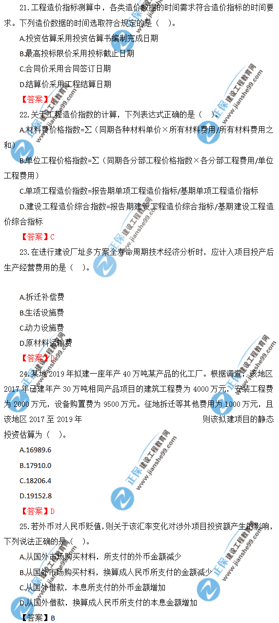 2019年一級造價師《建設(shè)工程計價》試題及答案解析21-30