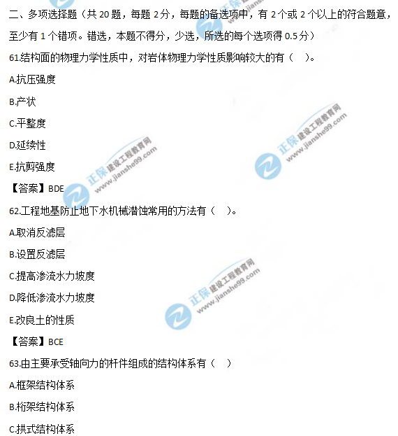 2019年一級(jí)造價(jià)師《技術(shù)與計(jì)量(土建)》試題及答案解析61-70