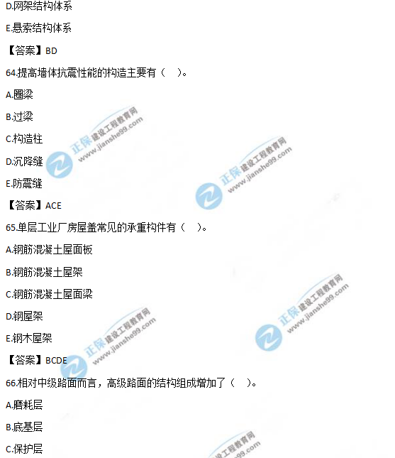 以上就是為大家分享的2019年一級(jí)造價(jià)師《技術(shù)與計(jì)量(土建)》試題及答案解析61-70,建設(shè)工程教育網(wǎng)將持續(xù)關(guān)注2020年一級(jí)造價(jià)師考試的相關(guān)信息。更多2020年一級(jí)造價(jià)師考試內(nèi)容,盡在建設(shè)工程教育網(wǎng)一級(jí)造價(jià)師欄目!