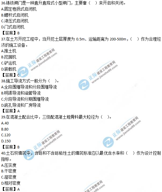 2019年一級造價師《技術(shù)與計量(水利)》試題及答案解析31-40