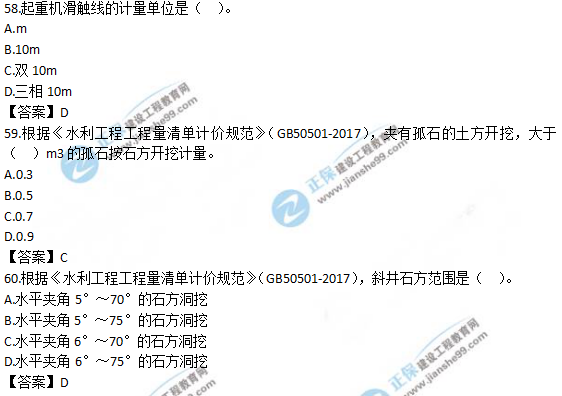 以上就是為大家分享的2019年一級(jí)造價(jià)師《技術(shù)與計(jì)量(水利)》試題及答案解析51-60,建設(shè)工程教育網(wǎng)將持續(xù)關(guān)注2020年一級(jí)造價(jià)師考試的相關(guān)信息。更多2020年一級(jí)造價(jià)師考試內(nèi)容,盡在建設(shè)工程教育網(wǎng)一級(jí)造價(jià)師欄目!