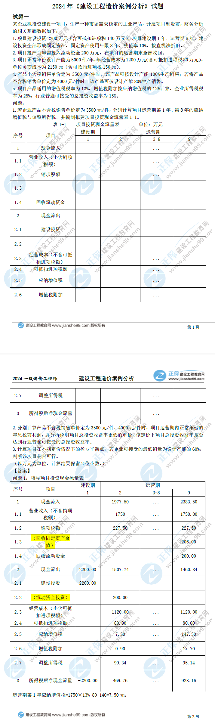 2024年一級造價(jià)師建設(shè)工程造價(jià)案例分析(土建)真題及答案解析