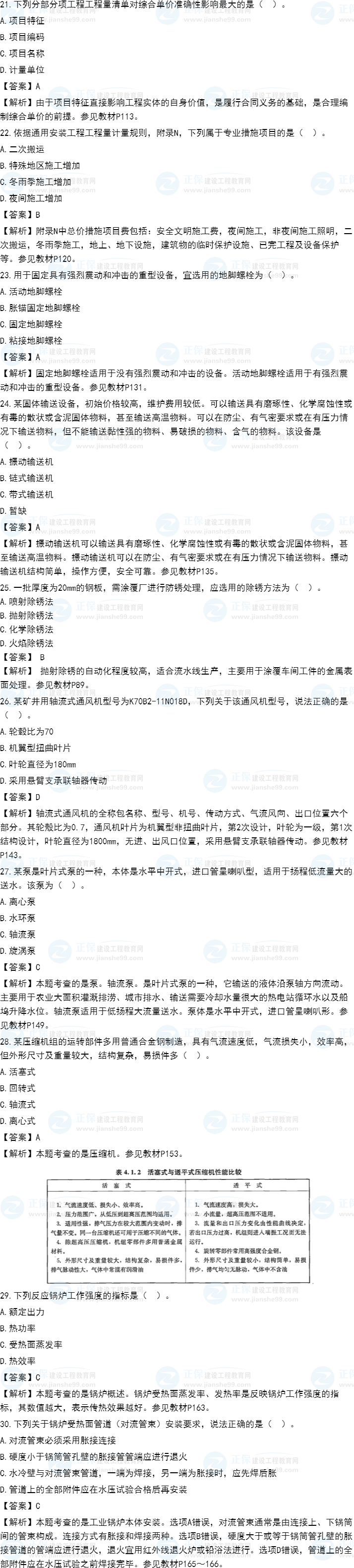 2021年一級造價師《安裝計量》試題答案及解析21-30