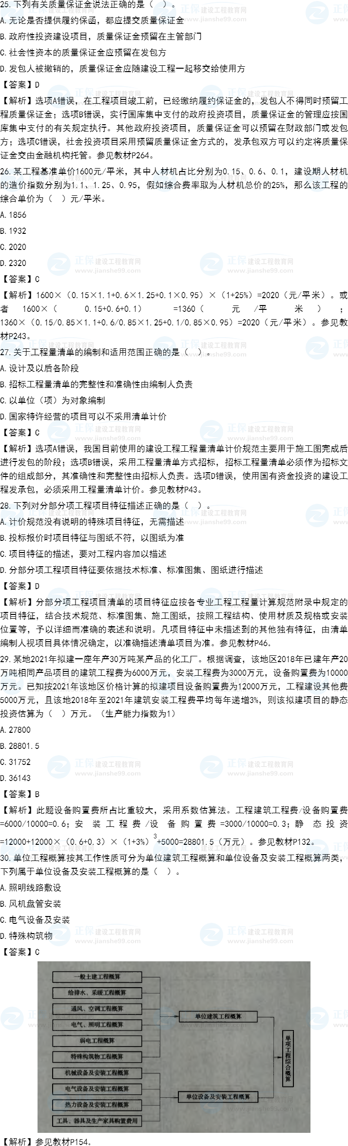 2021年一級(jí)造價(jià)師《建設(shè)工程計(jì)價(jià)》試題答案及解析21-30