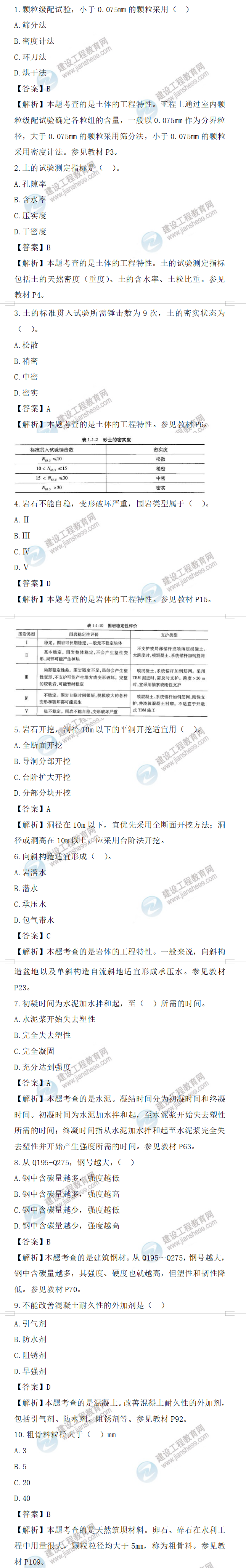 2022年一級(jí)造價(jià)師水利計(jì)量試題答案及解析1-10題