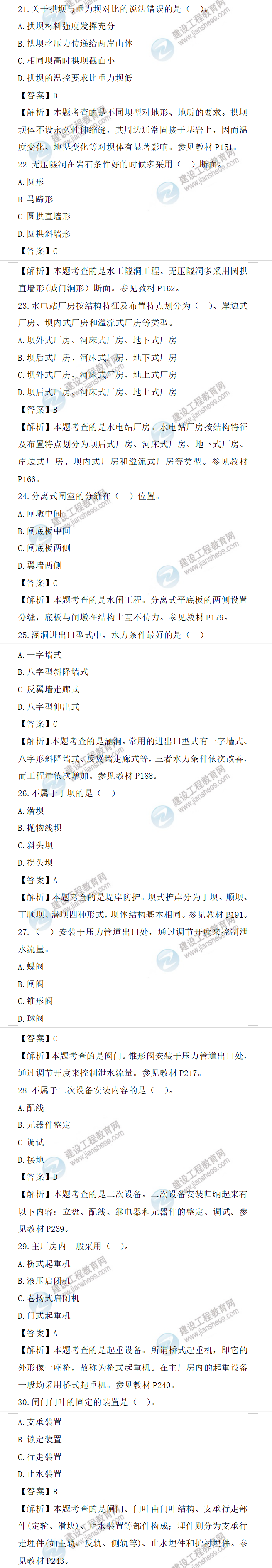 2022年一級造價師水利計量試題答案及解析21-30題