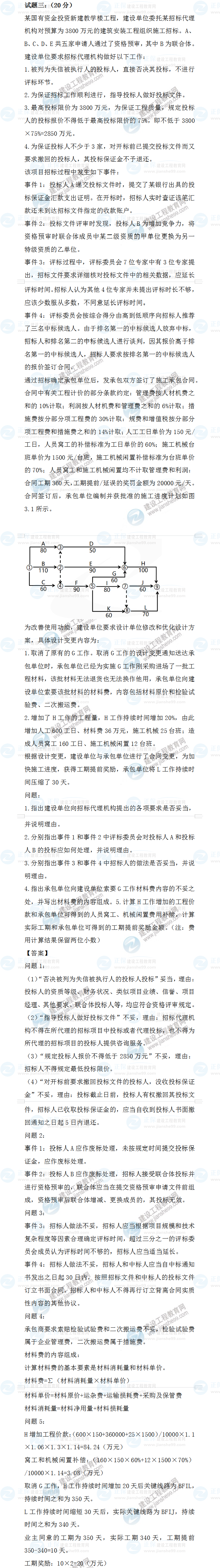 2022年一級(jí)造價(jià)師土建案例試題答案及解析案例三