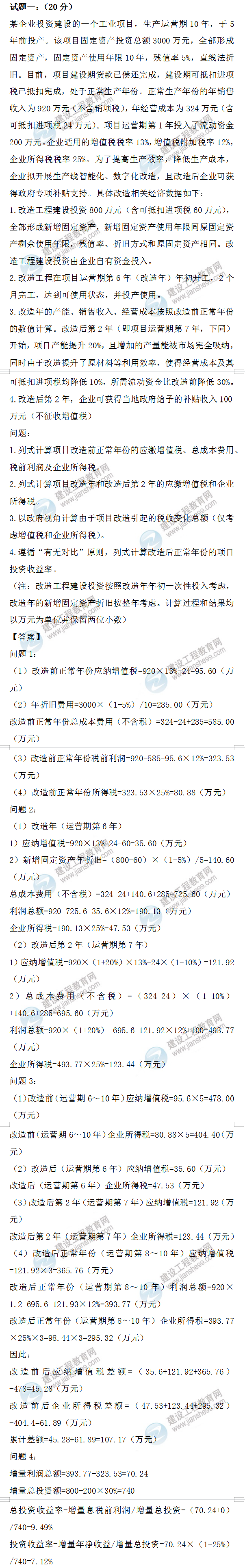2022年一級造價師安裝案例試題答案及解析案例一