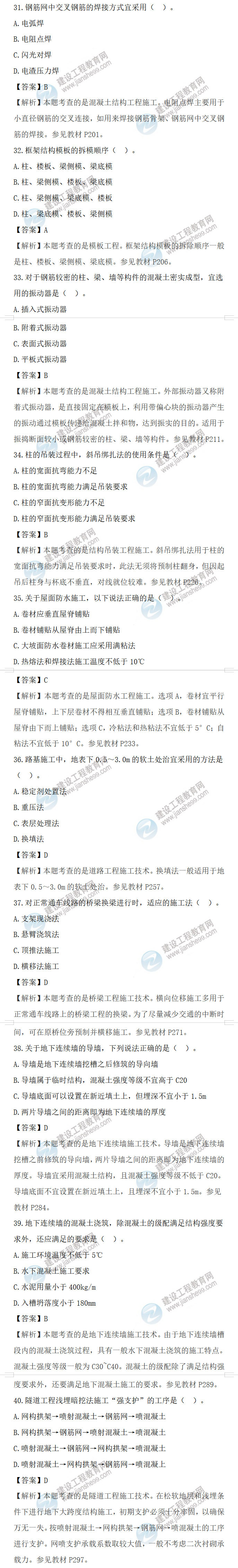 2022年一級造價師土建計量補(bǔ)考試題答案及解析31-40題