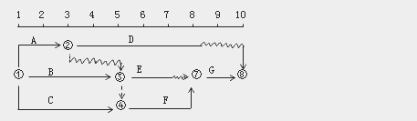 【試題·多選題71】某工程雙代號時標(biāo)網(wǎng)絡(luò)計劃如下圖所示,由此可以推斷出( )。