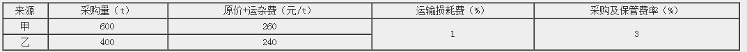 從甲、乙兩地采購某工程材料,采購量及有關(guān)費(fèi)用如下表所示。該工程材料的材料單價(jià)為( )元/t。