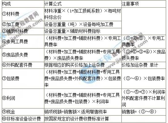 2.國(guó)產(chǎn)非標(biāo)準(zhǔn)設(shè)備原價(jià):不能批量生產(chǎn)。采用成本計(jì)算估價(jià)法、系列設(shè)備插入估價(jià)法、分部組合估價(jià)法、定額估價(jià)法等方法確定。(計(jì)插組定)