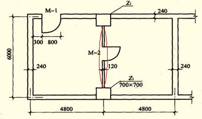 如下圖所示,紅色標記的120墻即為間壁墻: