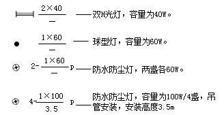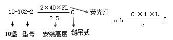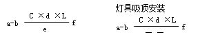 a-燈數(shù) b-型號或編號 c-每盞燈具的燈泡數(shù) d-燈泡容量(w) e-燈泡安裝高度(m) f-安裝方式 L-光源種類
