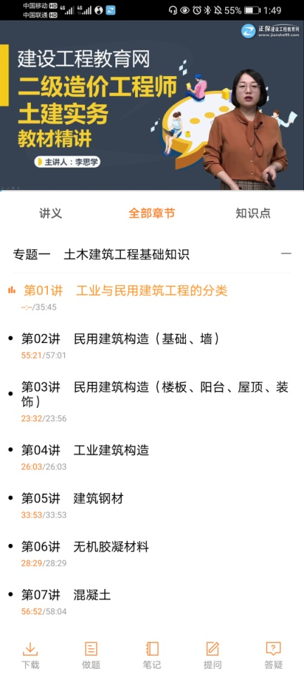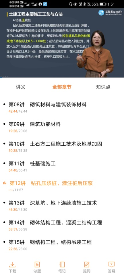 專題一還沒有具體講到工程量怎么計算,價款怎么調(diào)整,如果您是在項目上備考,完全可以在去往工地現(xiàn)場的路上掏出手機看上一段,不僅可以更好掌握施工知識,而且以后如果想要備考二建這里的知識也是完全可以派上用場的。