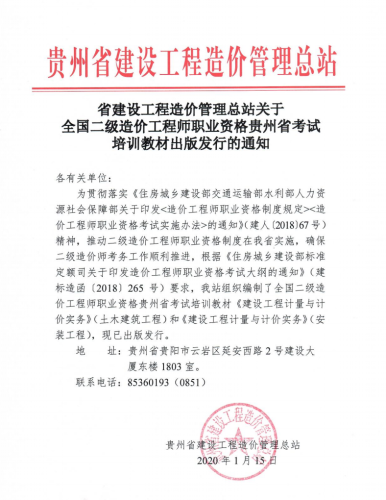 2020年06月28日,中國建設(shè)工程造價(jià)管理協(xié)會(huì)發(fā)布了2020年版全國二級(jí)造價(jià)工程師職業(yè)資格考試基礎(chǔ)科目培訓(xùn)教材,明確2020年度二級(jí)造價(jià)工程師職業(yè)資格考試使用由住房和城鄉(xiāng)建設(shè)部組織編寫、人力資源和社會(huì)保障部審定的2019年版《全國二級(jí)造價(jià)工程師職業(yè)資格考試大綱》。