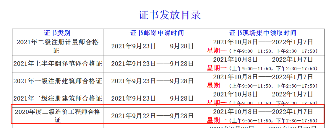 四川自貢2020年二級造價師證書辦理及領(lǐng)取通知