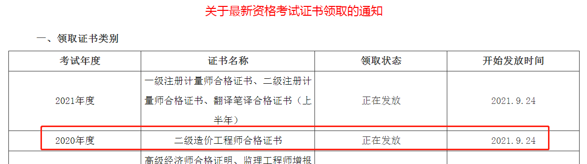 四川資陽2020年二級造價師證書辦理及領(lǐng)取通知