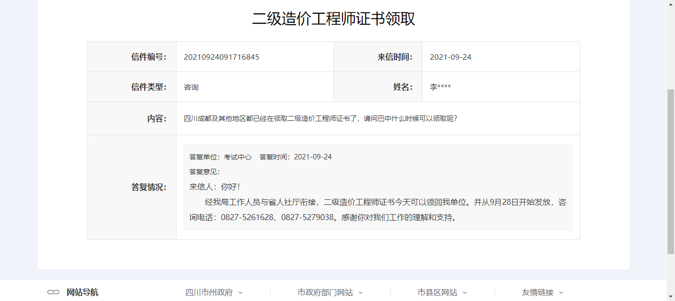 四川巴中2020年二級造價師證書辦理及領取通知