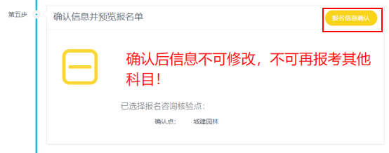 需注意:考試報(bào)名單確認(rèn)完成后,信息將不可再修改。