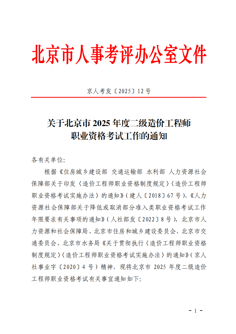 關(guān)于北京市2025年度二級造價工程師職業(yè)資格考試工作的通知_01