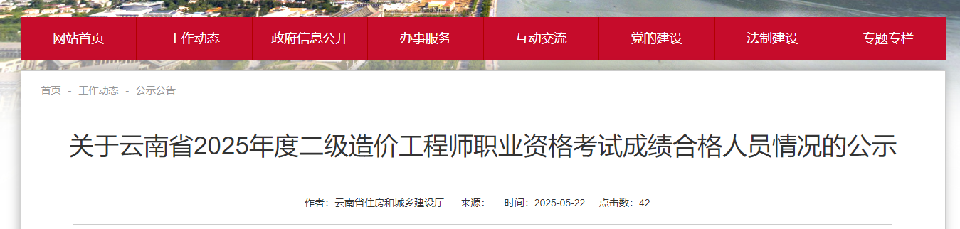 云南省2025年度二級(jí)造價(jià)工程師職業(yè)資格考試成績(jī)合格人員情況的公示