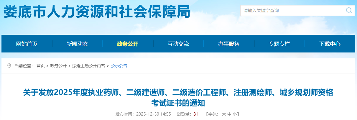 關(guān)于發(fā)放2025年度執(zhí)業(yè)藥師、二級(jí)建造師、二級(jí)造價(jià)工程師、注冊(cè)測(cè)繪師、城鄉(xiāng)規(guī)劃師資格考試證書的通知