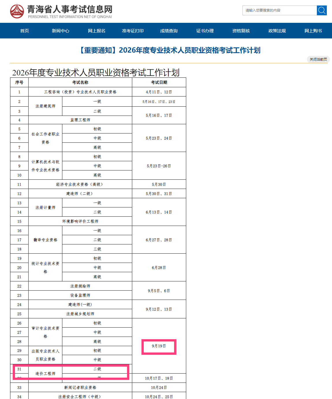 青海省2026年二級(jí)造價(jià)師考試時(shí)間確定!