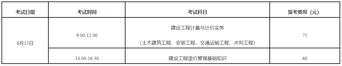 注:考試設(shè)基礎(chǔ)科目《建設(shè)工程造價管理基礎(chǔ)知識》(客觀題)、專業(yè)科目《建設(shè)工程計量與計價實務(wù)》(主客觀題)。其中《建設(shè)工程計量與計價實務(wù)》分為土木建筑工程、交通運(yùn)輸工程、水利工程、安裝工程4個專業(yè),報考人員可根據(jù)實際工作需要選報其一。